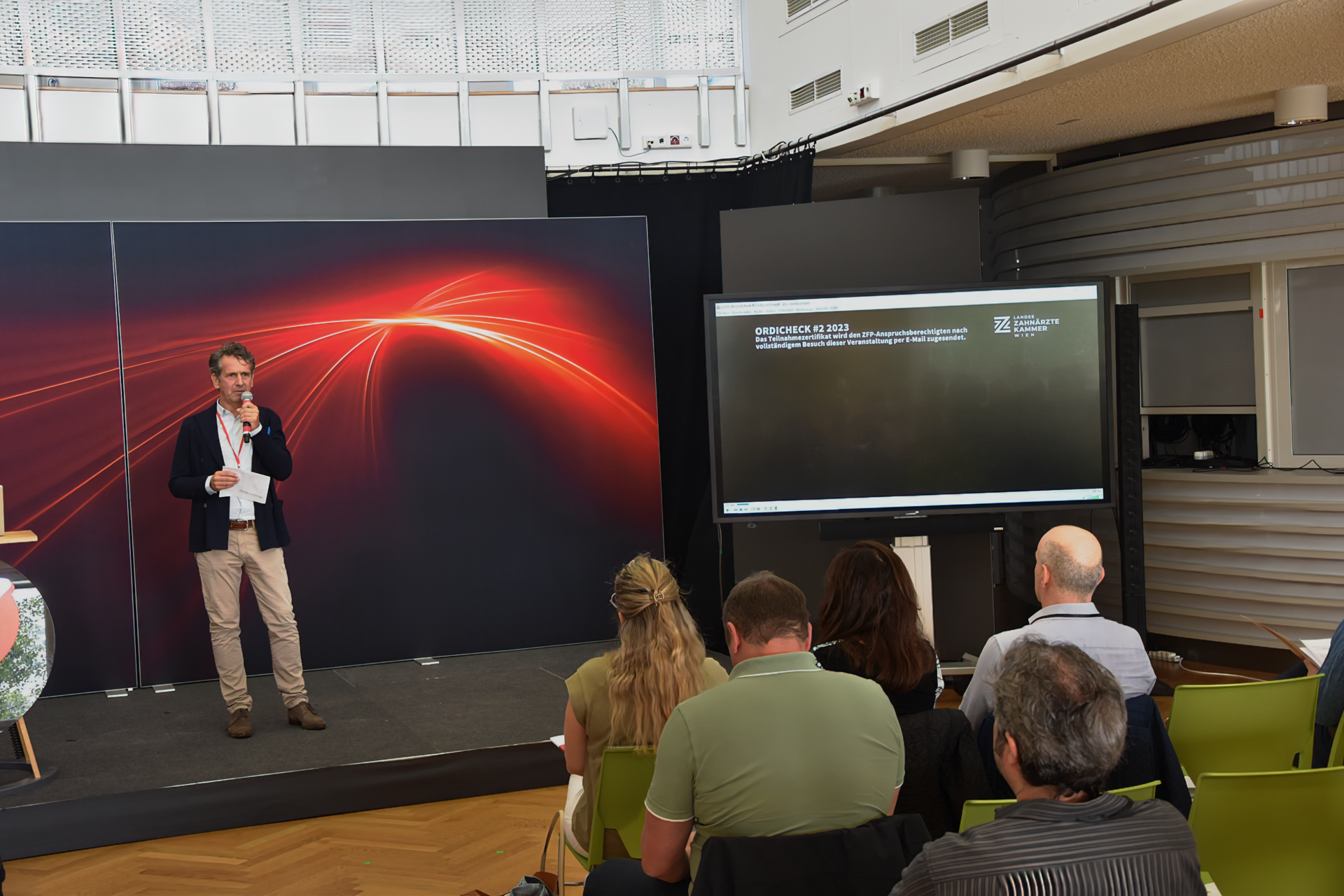 ...auf mehreren Ebenen auch in diesem Jahr versucht, den Dialog und den Servicegedanken zu forcieren – etwa im Rahmen von Messen (Wiener Internationalen Dentalmesse, WID, April), Diskussionsforen unter anderem zum Thema "Kassenplanstellenvergabe" (November, Dezember) oder zielgruppenspezifischen Veranstaltungen (OrdiCheck, Oktober). Wir konnten bei diesen Veranstaltungen mit mehr als 300 Kolleg:innen sprechen.