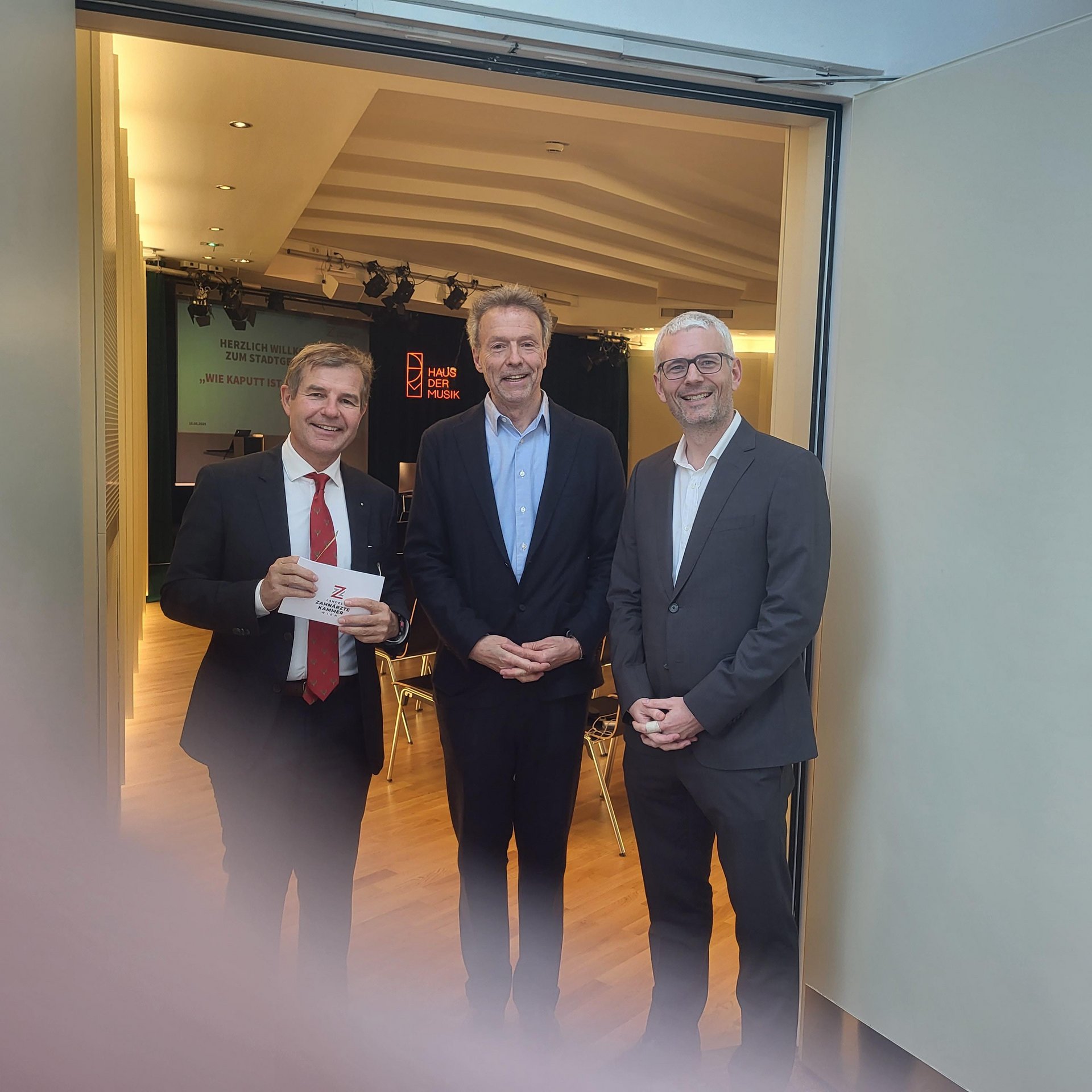 Besuch des Bezirksvorstehers des 6. Bezirks Markus Rumelhart; den Bezirksvorsteher empfingen Präsident Stephen Weinländer und Noémi-Katalin Marković (Referentin für Gender, Soziales und Jungzahnärzt:innen)
